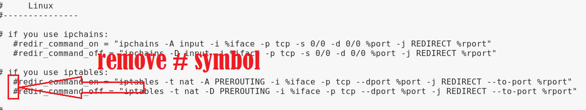 Step4; Activate the both commands that are below the ip table. To activate the command remove the # symbol and save the file.