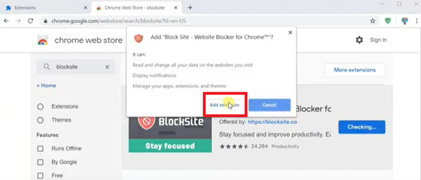 STEP2; Now, search for BlockSite, and add the extension to Chrome Brower.