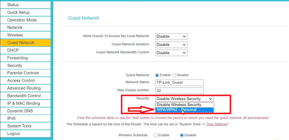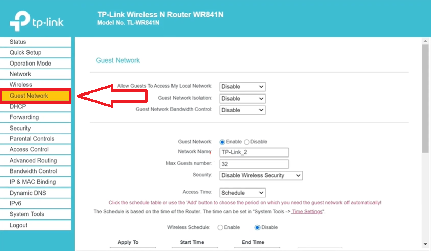 STEP:2) In the router web interface find the guest network option.