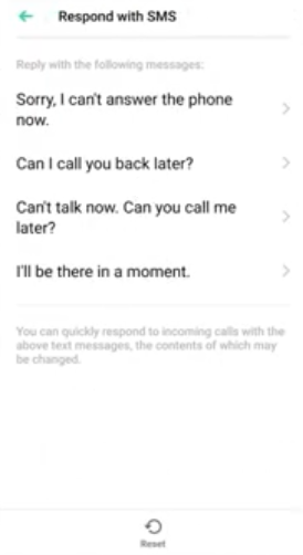 STEP3: When a call is coming through, select the text message symbol, and your quick responses pop up you can either choose one from the default responses or create a custom reply suitable for the time.