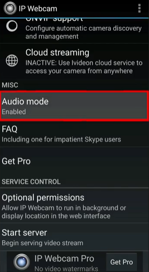 STEP2: You want to use the android microphone instead of the microphone on your computer keep the audio mode enabled.