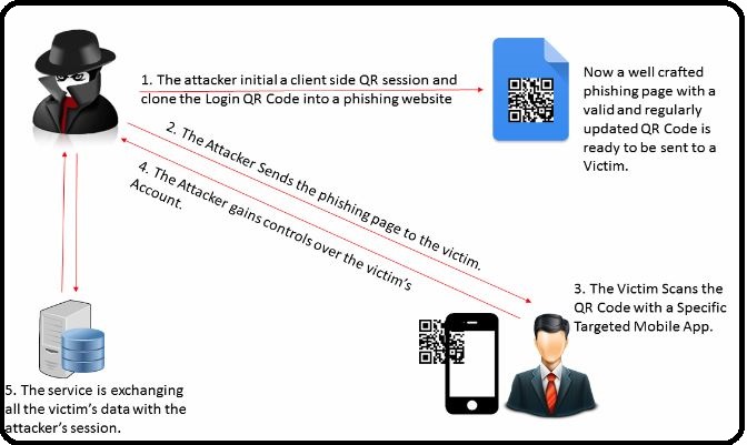 Now that we know the basics let’s see how QRLJacking attack works. The team responsible for creation of this attack presents a small visualization: