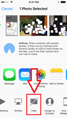 STEP4; Choose “Hide “ and Confirm your selection by selecting “Hide Photo/Videos“.